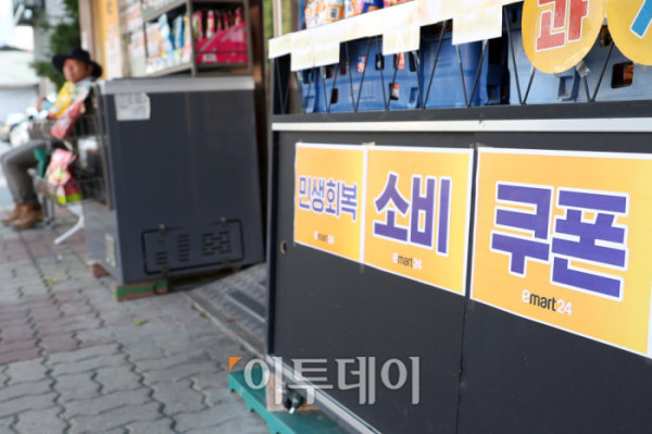 1인당 15만원에서 최대 55만원까지 받을 수 있는 민생회복 소비쿠폰 지급을 앞두고 10일 서울의 한 편의점에 소비쿠폰 사용처 안내 문구가 붙어있다. 소비쿠폰은 이달 21일부터 카드사와 지역사랑상품권 앱·누리집 등에 접속해 온라인으로 신청하거나, 카드와 연계된 은행 및 지방자치단체(주민센터)에서 대면으로 신청하면 된다. 정부는 이달 안에 1차 소비쿠폰 지급을 완료하고 관계부처 태스크포스(TF) 준비 등을 거쳐 2개월 안에 건강보험료 등을 기준으로 하위 90% 국민에게 10만원을 추가로 지급할 예정이다. 소비쿠폰 관련 문자 결제사기(스미싱) 피해를 막기 위해 정부는 공식 문자에 '인터넷 주소 바로가기(URL)' 링크를 포함하지 않기로 했다. 고이란 기자 photoeran@