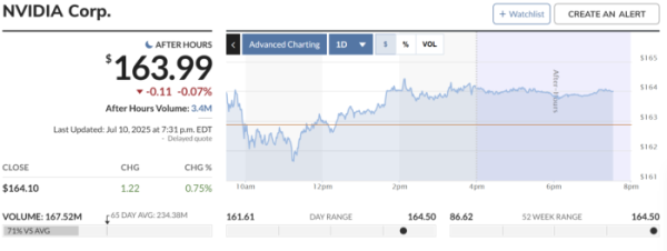 AI 반도체 업체 엔비디아 주가는 전날 대비 0.75% 오르며 종가 기준 시가 총액 4조 달러를 사상 처음으로 돌파했다. 엔비디아의 시총이 4조 달러를 넘어선 것은 지난해 6월 3조 달러 돌파 이후 약 13개월 만의 쾌거다.