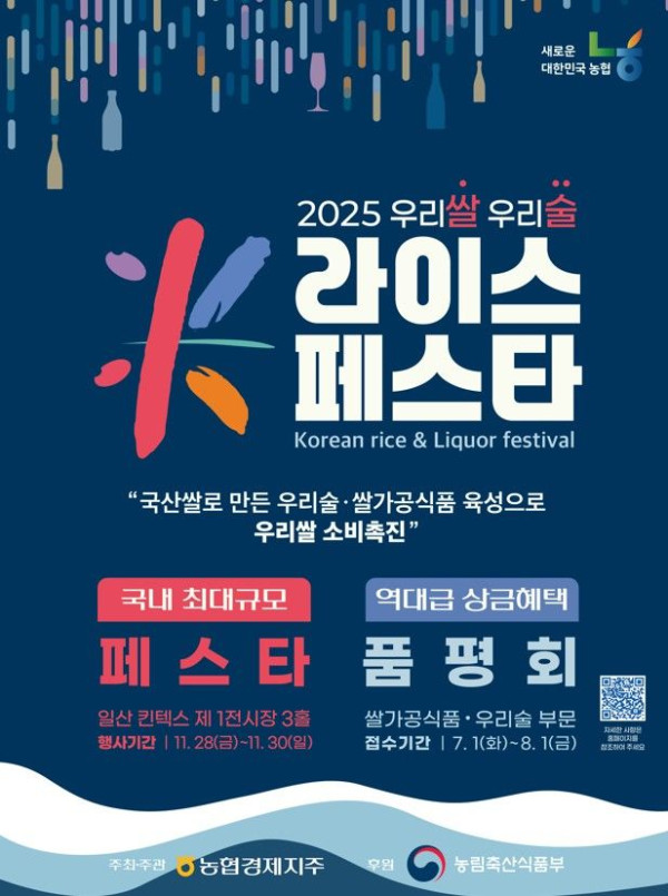 ▲농협 경기본부가 쌀 소비촉진과 쌀 가공식품 산업 활성화를 위해 '2025 우리쌀 우리술 K-라이스페스타' 에 참가할 도내 업체를 모집한다. (경기농협)