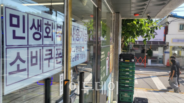 ▲1인당 15만원에서 최대 55만원까지 받을 수 있는 민생회복 소비쿠폰 지급을 앞두고 10일 서울의 한 편의점에 소비쿠폰 사용처 안내 문구가 붙어있다. (사진=고이란 기자 photoeran@)