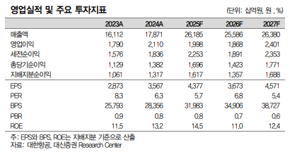 양지환 대신증권 연구원은 "대한항공의 2025년 2분기 영업이익은 3990억 원으로 당사의 추정 3825억 원을 소폭 상회하는 양호한 실적을 시현했다"며 "항공화물 운임(Yield)이 예상보다 견조하였으며, 신기종 도입에 따른 연료 효율성 증가로 유류비도 당사 예상보다 229억 원 적게 인식된 영향"이라고 말했다.