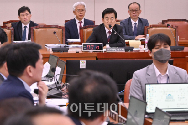 정동영 통일부 장관 후보자가 14일 서울 여의도 국회 외교통일위원회에서 열린 인사청문회에서 의원들의 질의에 답변하고 있다. 조현호 기자 hyunho@