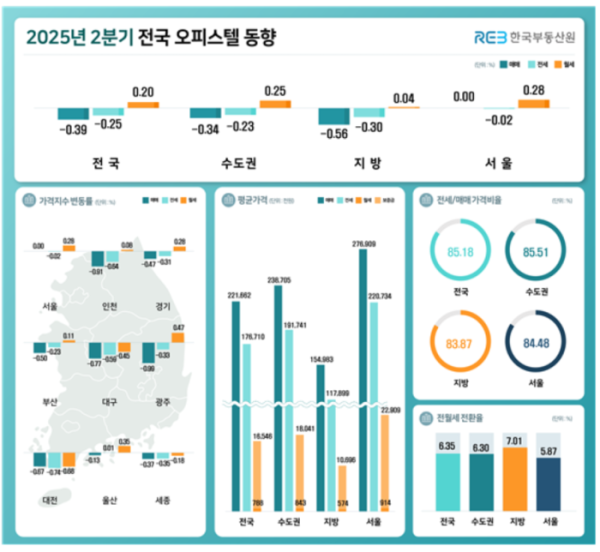 15일 한국부동산원이 발표한 2025년 2분기 ‘전국 오피스텔 가격동향 조사’ 결과에 따르면 전국 오피스텔 매매가격은 전 분기보다 0.39% 하락했다.