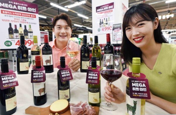 홈플러스는 세계 각국 유명 와인사와 협업해 선보이는 가성비 와인 시리즈 '빈야드' 론칭 10주년을 맞아 인기 품목 5종을 4990원에 한정 판매한다고 15일 밝혔다.