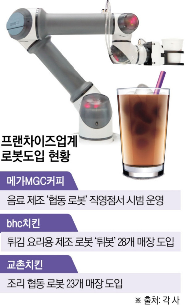 치킨 프랜차이즈 업계도 상황은 마찬가지다. 최저임금 상승으로 인건비가 늘어난 것은 물론 알바생을 구하기조차 쉽지 않아 인력난에 시달리고 있다. 이에 매장을 효율적으로 운영하고 음식의 맛도 일정하게 유지할 수 있는 ‘조리 로봇’ 도입에 힘을 주고 있다.