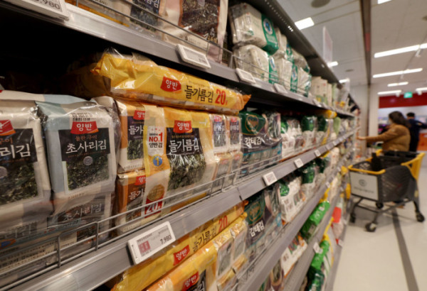 ▲서울의 한 대형마트 매대에 있는 조미 맛김 제품들 (사진=신태현 기자 holjjak@)