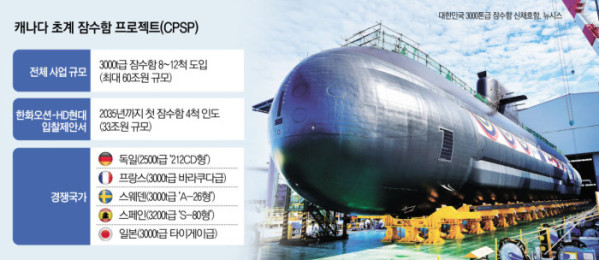 유지·보수·정비(MRO) 수요까지 합산하면 사업 규모가 최대 60조원에 달할 것으로 추산되는 매머드급 프로젝트다. 한국은 양대 조선업체인 HD현대와 한화오션이 '원팀'을 이뤘고, 장보고-Ⅲ급(3000t 이상) 잠수함을 앞세워 수주경쟁에 참여하고 있다.