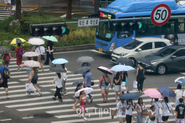 ▲전국 대부분 지방에 비가 내리는 14일 서울 중구 을지로 1가에서 우산을 쓴 시민들이 발걸음을 재촉하고 있다. 기상청은 내일 오후까지 오락가락 비가 이어지다가 모레 전국에 다시 비가 올것으로 예보했다. 고이란 기자 photoeran@ (이투데이 DB)