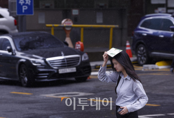 ▲전국 곳곳에서 강한 비가 내리며 침수와 하천 범람 등 호우 관련 피해가 발생한 17일 서울 청계천 일대에서 우산을 준비하지 못한 한 시민이 비를 피해 발걸음을 재촉하고 있다. 어제 오후 5시부터 서울 전역에 내려졌던 호우주의보는 이날 오전 해제됐다. 조현호 기자 hyunho@