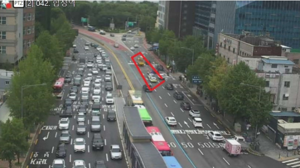 18일 오후 서울 마포구 합정역에서 양화대교 북단으로 향하는 양화로 3차로에 포트홀(도로노면패임)이 발생해 통제 중이다.