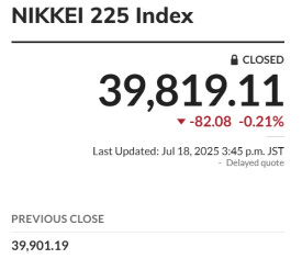 이날 일본 증시는 일요일(7월 20일) 참의원(상원) 선거를 앞두고 정치 불확실성이 확대되며 투자 심리가 위축됐다.