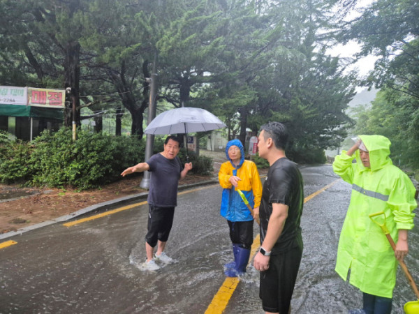 폭우가 지속되는 가운데 나동연 시장은 이날 오전 5시 30분부터 내원사 인근 저지대, 수위가 상승한 삼계교, 양산천 둔치 등 주요 침수 우려 지역을 직접 점검했다. 현장에서는 우수 배수 상태와 하천 수위 등을 직접 확인하며 대응 지침을 지시한 것으로 전해졌다.