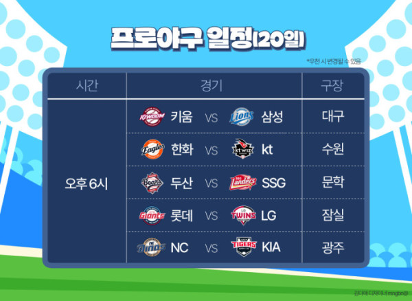 사흘 연속으로 우천 취소. 오늘은 경기가 열릴 수 있을까. 4연승 NC 다이노스와 4연패 KIA 타이거즈가 한판 승부를 벌인다. NC와 KIA는 이날 선발 투수로 신민혁과 이의리를 내세운다.