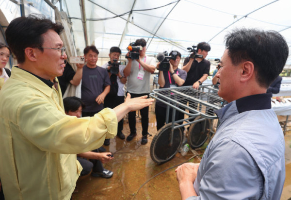 이어 광주시 북구 용강동 하신마을로 이동해 문인 북구청장으로부터 침수 피해 현황을 청취하고 농경지 침수(딸기 육묘장) 및 주택침수 현장을 둘러봤다.