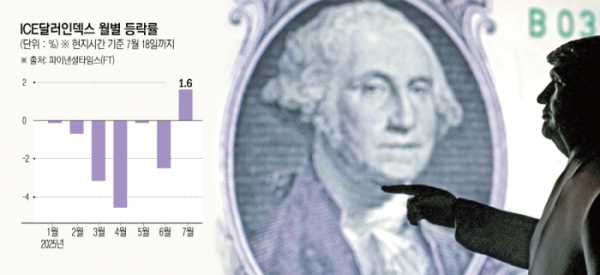 달러인덱스는 미국발 관세 전쟁이 경제성장을 저해할 것이라는 우려와 도널드 트럼프 미국 대통령의 제롬 파월 미 연방준비제도(Fed·연준) 의장 해임 압박, 급증하는 국가부채에 대한 불안감 등에 상반기 10.8% 떨어지면서 52년 만에 가장 큰 하락 폭을 기록했다. 특히 트럼프 대통령이 금리 인하를 놓고 여러 차례 파월 의장을 비난하고 후임자를 물색하고 있다는 소식까지 전해지면서 달러 약세를 점치는 전망도 커졌다.