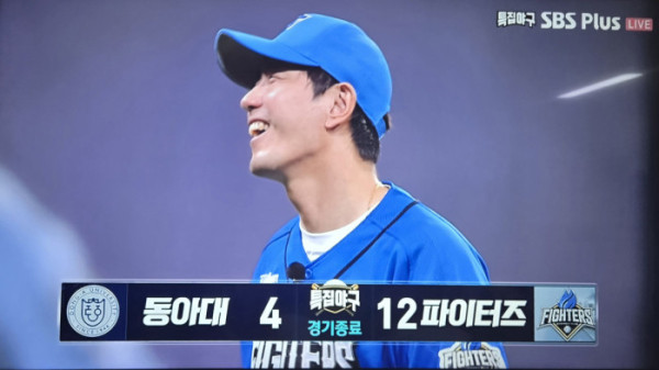 이들은 동아대 타선을 4실점으로 막아내며 성공적으로 임무를 수행했다. 타선도 화끈했다. 2회말 박재욱이 개인 첫 홈런을 터뜨리며 두 점을 추가했고 6회말에는 이대호가 만루홈런으로 분위기를 완전히 가져왔다. 결국 경기는 12대 4, 불꽃 파이터즈의 대승으로 종료됐다.