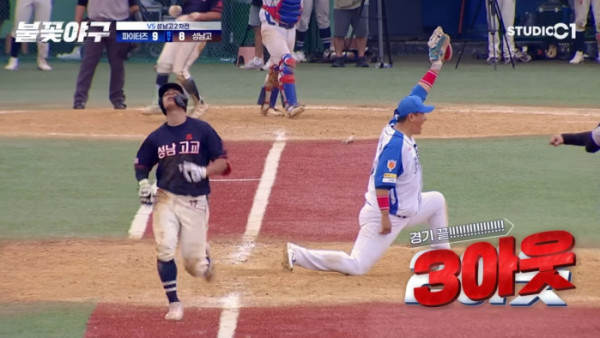이날 경기는 지난달 22일 SBS Plus를 통해 ‘<특집야구> 불꽃 파이터즈 대 인하대학교’라는 이름으로 생중계되기도 했던 바로 그 경기다. 하지만 먼저 시청자들의 긴장감을 최고조로 끌어올린 건 성남고와의 후반기 경기였다.