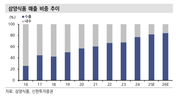 조상훈 신한투자증권 연구원은 "양적 한계가 명확해진 국내 음식료 시장에서 모범적"이라며 "수출 실적 추정치 상향을 반영한 것"이라고 평가했다.