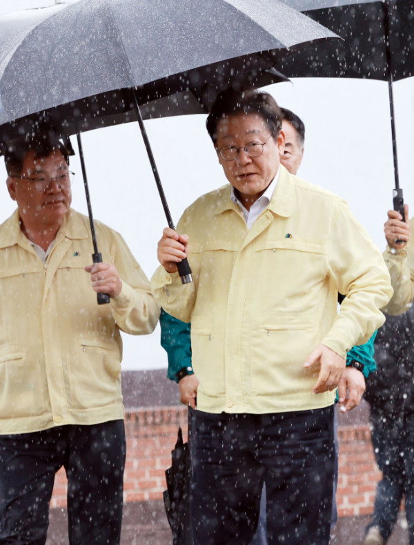 ▲이재명 대통령이 21일 경남 산청군 산청읍 행정복지센터 인근에 마련된 호우 피해 통합지원본부를 방문하고 있다. (연합뉴스)