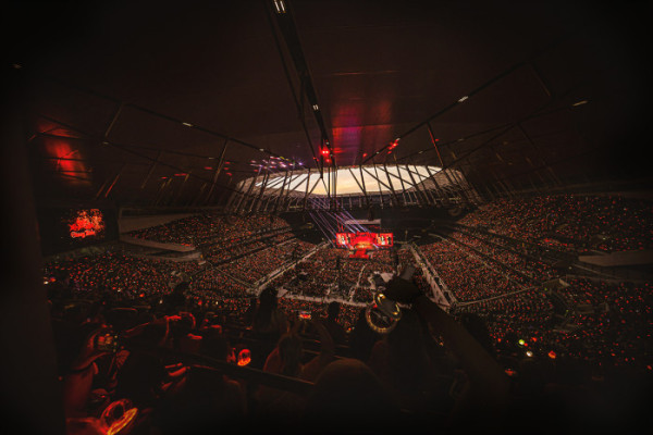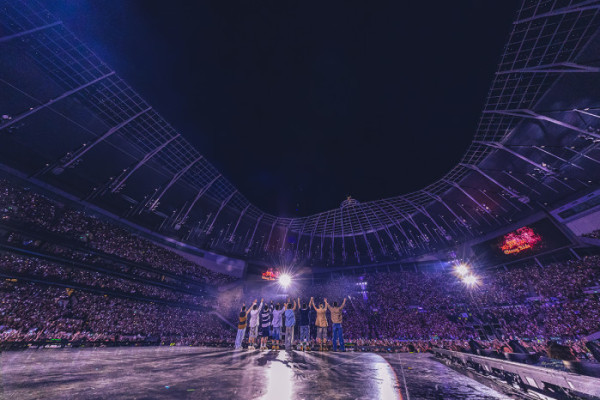 흥을 돋우던 사운드가 커지고 댄서들의 움직임이 무대 상하수에서 포착되자 스타디움 꼭대기 층까지 꽉 들어찬 관객은 일제히 자리에서 일어나 환호를 터뜨렸다. 그룹명을 적은 거대한 깃발이 기세 좋게 휘날리는 가운데 마침내 멤버들이 모습을 드러냈다. 정상에 올라선 자신감과 에너지를 담은 '마운틴스(MOUNTAINS)'로 'K팝 최초' 토트넘 홋스퍼 스타디움 입성 공연의 힘찬 포문을 열었고 약 180분간 30곡을 생생한 밴드 사운드에 맞춰 라이브로 선사했다. '매니악(MANIAC)', '특', '락 (樂)', '칙칙붐(Chk Chk Boom)' 등 영국 오피셜 싱글 차트 입성곡 무대 때는 귓가를 쩌렁쩌렁 울리는 떼창 장관이 펼쳐지기도 했다.
