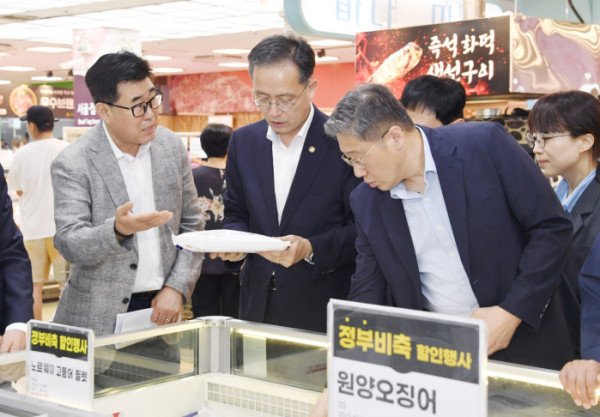 회의에 앞서 이 차관은 강형석 농림축산식품부 차관, 해양수산부 홍래형 수산정책실장과 농협 하나로마트 내 과일·채소·축산·수산물 매장을 돌아보며 농축수산물 할인 행사 진행 상황 및 가격·수급 동향을 점검하고 현장 소비자 반응에 대한 의견을 청취했다.