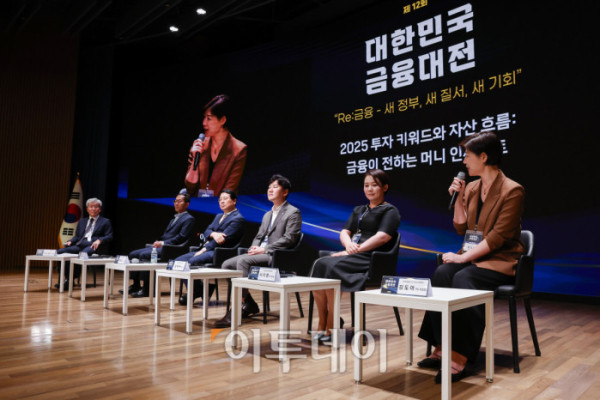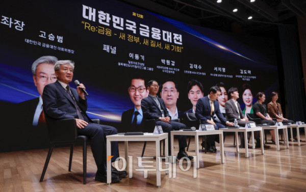 ▲좌장인 고승범 대한민국 금융대전 대회위원장이 23일 서울 중구 대한상공회의소에서 열린 ‘제12회 대한민국 금융대전’에서 '2025 투자 키워드와 자산 흐름: 금융이 전하는 머니 인사이트' 패널토론을 진행하고 있다. 이투데이가 ‘Re:금융 – 새정부, 새질서, 새기회’를 주제로 마련한 이번 행사는 디지털 전환, ESG 확산, 자산시장의 구조적 변화라는 큰 흐름 속에서 새 정부의 금융정책 방향을 공유하고, 이에 대한 금융회사들의 대응 전략을 다각도로 분석하는 자리다. 조현호 기자 hyunho@