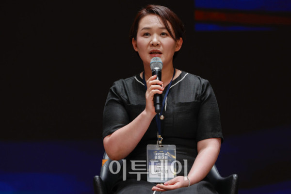 ▲김도아 우리은행 TCE 시그니처센터 PB 지점장이 23일 서울 중구 대한상공회의소에서 열린 ‘제12회 대한민국 금융대전’에서 패널토론을 하고 있다. 이투데이가 ‘Re:금융 – 새정부, 새질서, 새기회’를 주제로 마련한 이번 행사는 디지털 전환, ESG 확산, 자산시장의 구조적 변화라는 큰 흐름 속에서 새 정부의 금융정책 방향을 공유하고, 이에 대한 금융회사들의 대응 전략을 다각도로 분석하는 자리다. 조현호 기자 hyunho@