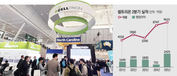 24일 제약·바이오업계에 따르면 셀트리온은 올해 2분기 연결기준 매출액 9615억 원, 영업이익 2425억 원을 기록하며 매출과 영업이익 모두 2분기 기준 역대 최대치를 달성했다. 전년 동기와 비교할 때 매출액 9.9%, 영업이익은 234.5% 대폭 증가했다.