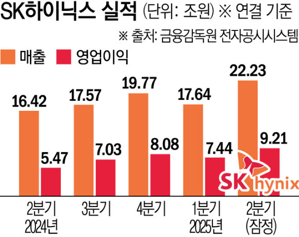 SK하이닉스가 올 2분기 매출 22조 원, 영업익 9조 원 시대를 열며 글로벌 반도체 시장 패권을 거머쥐었다. 인공지능(AI) 수요 확산에 따른 핵심 제품인 고부가 고대역폭 메모리(HBM) 공급 확대에 힘입어 분기 기준 사상 최대 실적을 기록했다.