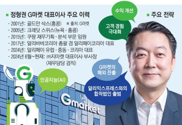 24일 유통업계에 따르면 1973년 생인 정형권 G마켓 대표는 미국 브라운대학교에서 경제학과 응용수학을 전공한 후 골드만 삭스(2001년, 홍콩), 크레딧 스위스(2005년, 뉴욕ㆍ홍콩)에서 근무한 재무전문가다. 그에게 붙여진 또다른 별칭은 '국내 대표 이커머스ㆍ핀테크 전문가'라는 타이틀이다. 정 대표는 2015년 쿠팡에서 재무기획ㆍ분석 임원을 역임했고 이후 국내에서 알리바바와 알리페이 등을 진두지휘했다.