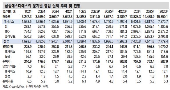 ▲삼성에스디에스 분기별 영업 실적 추이 및 전망. (출처=신한투자증권)