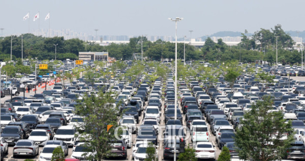 ▲휴가철을 앞두고 25일 서울 강서구 김포공항 국내선 청사 주차장이 차량으로 붐비고 있다. 한국공항공사에 따르면 휴가철 항공기 2만4067편이 뜨고 내리고, 승객 431만명이 공항을 이용할 것으로 예상했다. 일평균으로는 항공기 1416편, 승객 25만3000명으로, 지난해 같은 기간(10365편·23만8729명)보다 소폭 증가했다. 공항별로는 김포공항이 25일, 김해공항이 26일, 제주공항이 내달 4일에 가장 많은 여객이 몰릴 예정이다. 고이란 기자 photoeran@