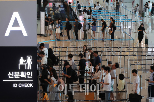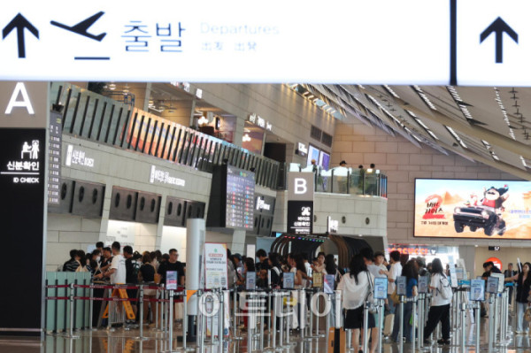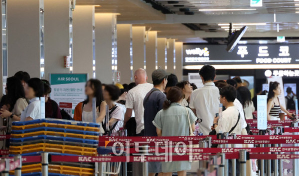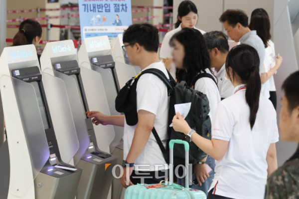 휴가철을 앞두고 25일 서울 강서구 김포공항 국내선이 여행객으로 붐비고 있다. 한국공항공사은 휴가철 항공기 2만4067편이 뜨고 내리고, 승객 431만명이 공항을 이용할 것으로 예상했다. 일평균으로는 항공기 1416편, 승객 25만3000명으로, 지난해 같은 기간(10365편·23만8729명)보다 소폭 증가했다. 공항별로는 김포공항이 25일, 김해공항이 26일, 제주공항이 내달 4일에 가장 많은 여객이 몰릴 예정이다. 고이란 기자 photoeran@