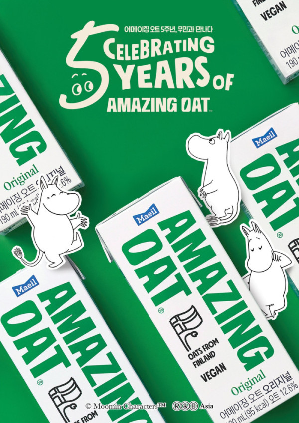 매일유업의 국내 1위 오트 음료 브랜드 ‘어메이징 오트’는 핀란드의 국민 캐릭터 ‘무민(Moomin)’과 대규모 브랜드 컬래버를 15일부터 시작했다. 이번 컬래버는 올해로 어메이징 오트의 출시 5주년과 무민 탄생 80주년이 되는 해를 기념해 성사됐다.