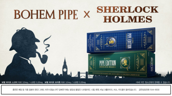 이 제품은 영국 런던에서 활약했던 명탐정 셜록홈즈가 평소 파이프로 시가를 즐겼던 점에 착안, 셜록홈즈가 파이프 담배를 물고 있는 일러스트 얼굴 형상을 보루에 새겨 신선함을 더한다. 보헴 파이프 에디션 셜록홈즈는 면세 전용 상품으로 인천공항 등 공항 면세점과 전국 시내면세점에서만 한정 기간 판매한다.