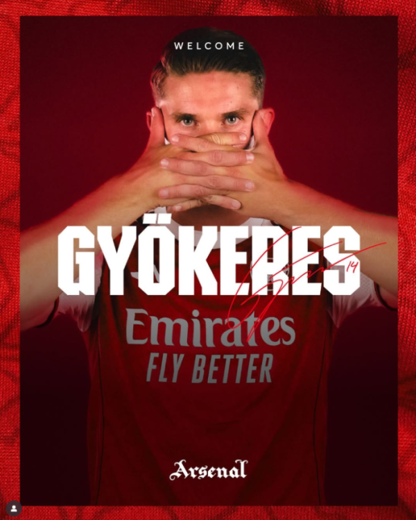 잉글랜드 프리미어리그(EPL) 아스널은 27일(한국시간) 구단 공식 채널을 통해 요케레스 영입을 발표했다. 요케레스는 이적료가 옵션 포함 7350만 유로(약 1195억 원)에 달하는 것으로 알려졌다. 계약기간은 5년이며, 등번호는 과거 아스널에서 활약한 '킹' 티에리 앙리의 등번호 14번을 부여받았다.