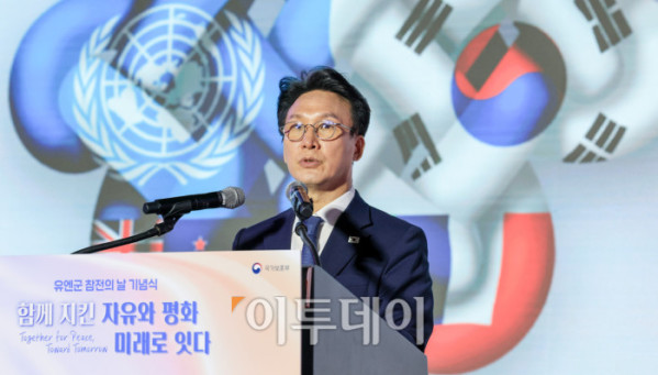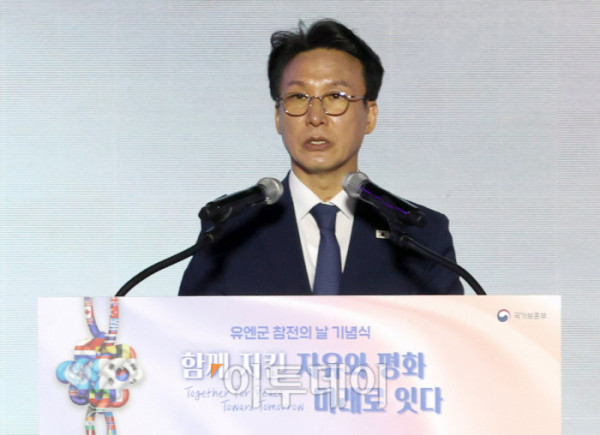 ▲김민석 국무총리가 27일 경기 고양시 일산서구 킨텍스에서 열린 2025년 유엔군 참전의 날 기념식에서 기념사를 하고 있다. 조현호 기자 hyunho@