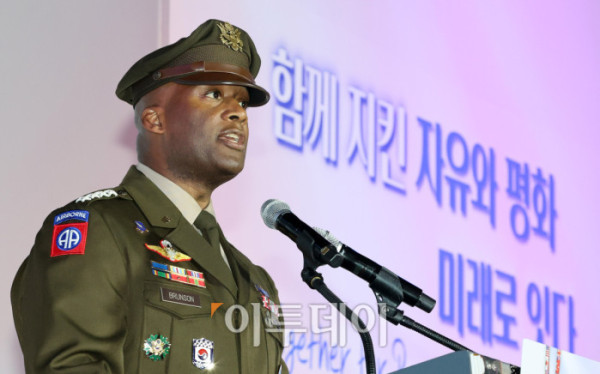 ▲제이비어 브런슨 유엔군 사령관이 27일 경기 고양시 일산서구 킨텍스에서 열린 2025년 유엔군 참전의 날 기념식에서 인사말을 하고 있다. 조현호 기자 hyunho@