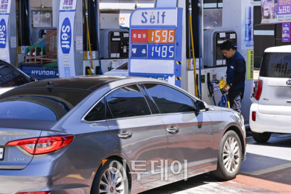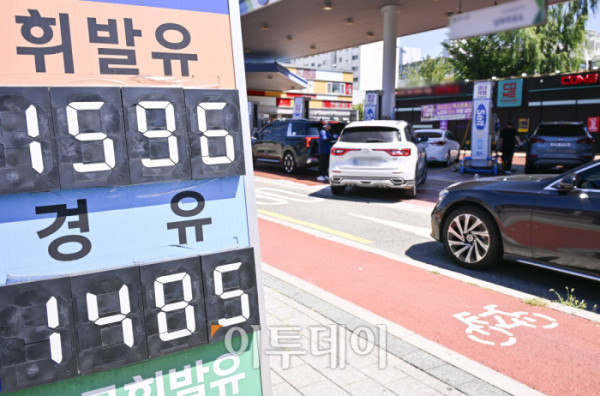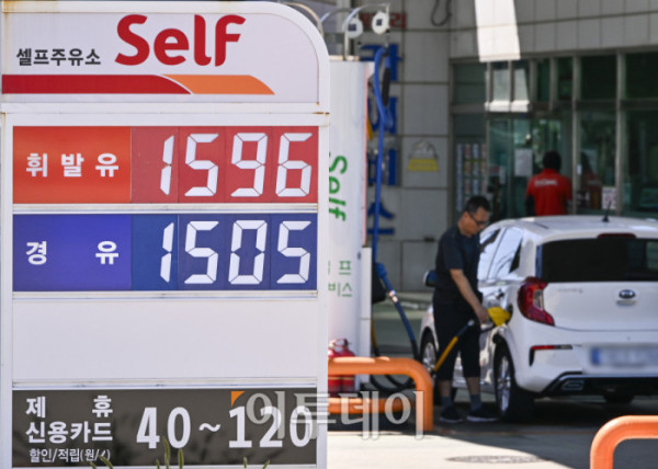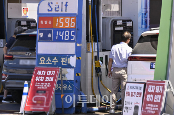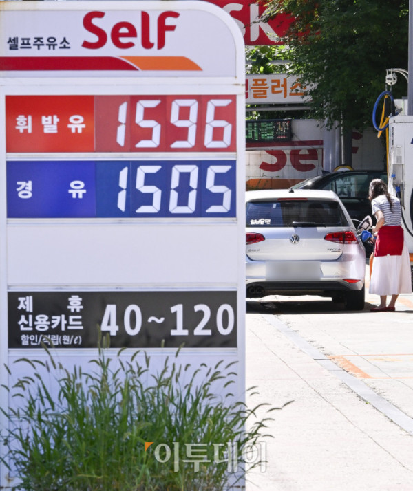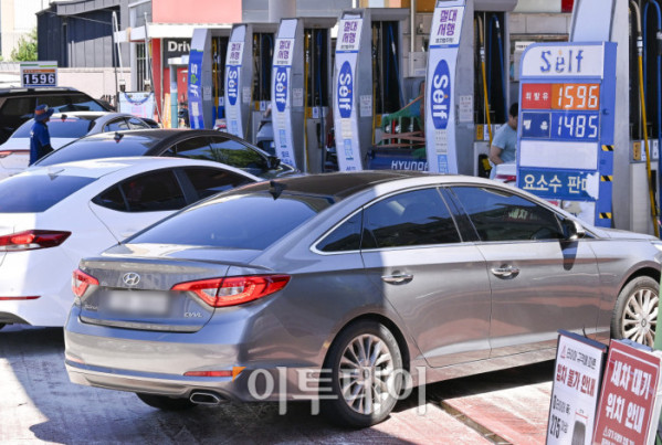국내 주유소 휘발유의 주간 평균 가격이 1주 만에 다시 하락 전환하고 경유 가격은 소폭 오름세를 이어갔다. 한국석유공사 유가정보시스템 오피넷에 따르면 7월 넷째 주(20∼24일) 전국 주유소 휘발유 평균 판매가는 지난주보다 리터당 0.5원 내린 1667.4원을 기록했다. 경유 평균 판매 가격은 전주 대비 0.9원 오른 1531.8원을 기록했다. 27일 서울 시내 한 주유소에 유가정보가 게시돼 있다. 조현호 기자 hyunho@
