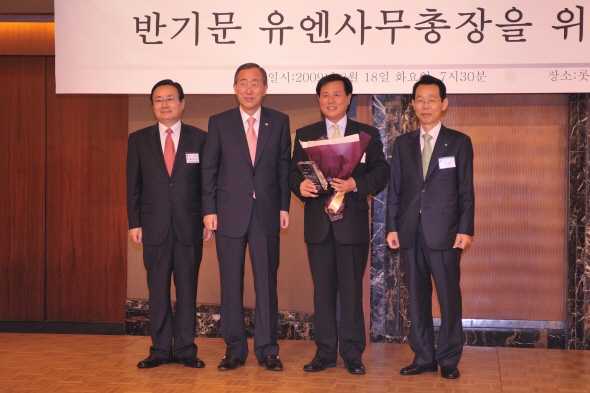 반기문 국제연합(UN) 사무총장이 UN글로벌콤팩트로 부터 '2009 UN우수보고서'로 선정된 조폐공사의 '지속가능경영보고서'에 대한 시상식을 18일 서울 롯데호텔에서 가졌다.
