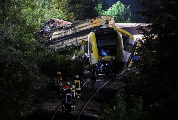 독일 남서부 바덴뷔르템베르크주에서 27일 오후 지역고속열차가 탈선해 최소 4명이 숨지고 수십 명이 다쳤다. 사고는 리들링겐 인근에서 발생했으며 열차에는 약 100명이 탑승 중이었다. 현지 언론은 2량 이상의 객차가 선로를 이탈했다고 전했다. 사고 당시 시간당 30㎜가 넘는 폭우가 내려 산사태로 선로가 유실됐을 가능성이 제기됐다. 숲속 사고 현장과 악천후로 구조 작업에 난항을 겪고 있다.