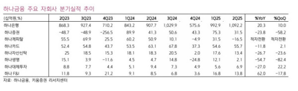 다만 "비은행 자회사 이익 비중은 12%로 2020~2021년 기록했던 30%대보다 크게 낮을 뿐만 아니라 지난해 15.7%보다도 낮은 상황"이라며 "증권 자회사 순이익이 2분기 직전 분기 대비 58% 감소하는 등 정상화되기까지는 추가적으로 시간이 필요해 보인다"고 말했다.