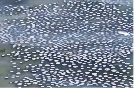 모래사장은 물론 바닷물 위에도 작은 원형 해파리들이 가득 떠다니며 '푸른 곰팡이' 같은 모습을 연출했다.