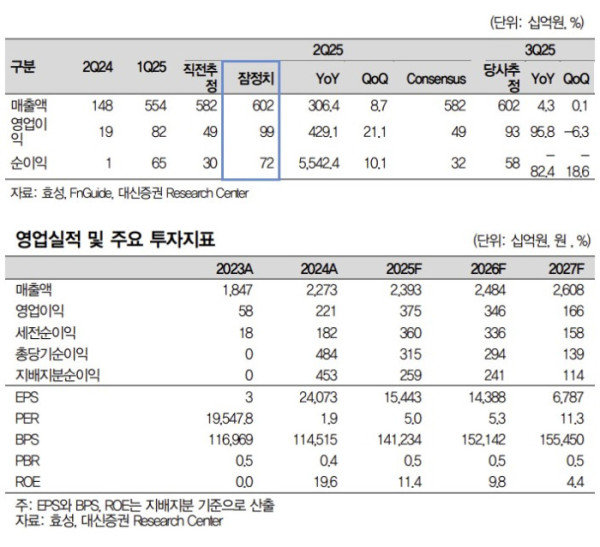2분기 실적은 영업이익이 시장 기대치를 크게 상회하는 깜짝 실적을 시현했다. 주된 이유는 △효성중공업의 실적 서프라이즈에 따른 지분법 손익 증가 △연결자회사인 효성티앤에스의 실적 개선 △지분법 손실을 예상했던 효성화학이 온산 터미널 매각이익 반영에 따라 지분법 이익 반영 등으로 분석했다.