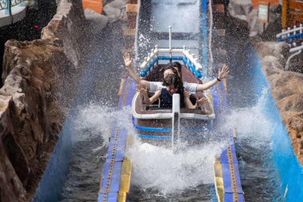 ▲모델들이 롯데월드 어드벤처 워터 어트랙션 ‘후룸라이드’를 타고 있다. (사진제공=롯데월드)