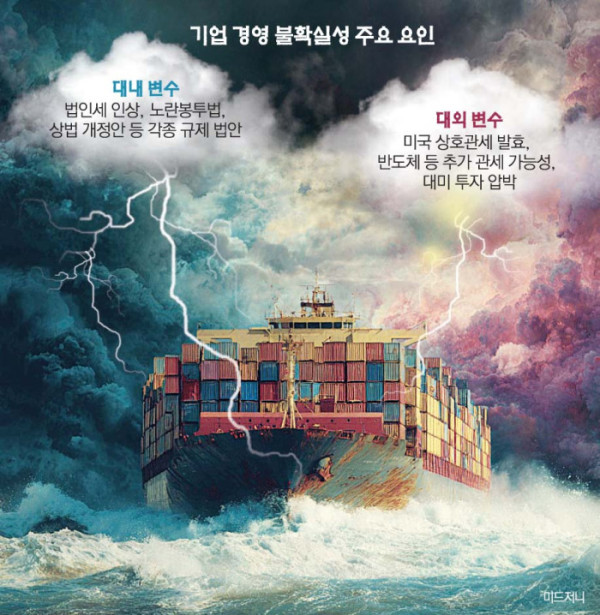 기업 경영의 기본 전제는 ‘예측 가능성’이다. 기업인들이 그 어떤 리스크보다도 가장 두려워하는 건 한 치 앞을 내다볼 수 없는 현실이다. 최근 한국 기업이 맞닥뜨린 상황이 바로 그렇다. 불확실성이 일상이 되고 기업의 전략 수립 주기가 무의미해지는 현상은 ‘위기’를 넘어 ‘마비’에 가깝다.
