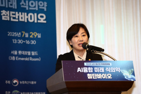 29일 농식품부는 이날 오후 서울 롯데호텔에서 인공지능(AI)융합 미래 식‧의약 첨단바이오를 주제로 '제38차 농림식품산업 미래성장포럼(미래성장포럼)'을 개최했다고 밝혔다.