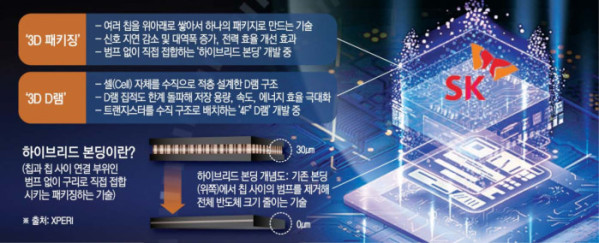 SK하이닉스가 차세대 메모리 기술 선점에 박차를 가하고 있다. 특히 칩의 집적도와 성능을 대폭 향상시킬 수 있는 ‘3D 패키징’과 ‘3D D램’ 등에 집중하는 모양새다. SK하이닉스는 현재 고대역폭메모리(HBM) 시장을 선도한 데 이어 차세대 기술도 조기 선점해 메모리 시장에서 입지를 넓히겠다는 포부다.