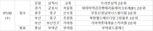 또 부산 부산진구 '가야역롯데캐슬스카이엘'와 부산 동구 '북항월드메르디앙그랑블루', 강원 삼척시 '트리븐삼척', 광주 동구 '무등산경남아너스빌디원'의 2순위 청약 접수도 이날 이뤄진다.