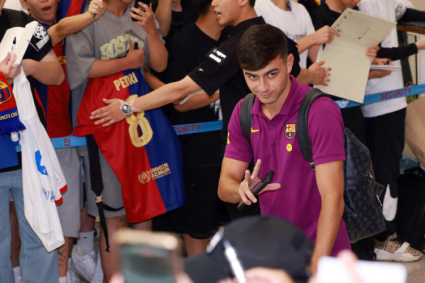 ▲프리시즌 투어 중인 스페인 프로축구 FC바르셀로나의 페드리가 29일 인천국제공항 제2여객터미널을 통해 입국하고 있다. (연합뉴스)